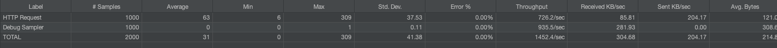 - 쓰레드 : 100,, ramp-up 시간 1, loop-count: 10