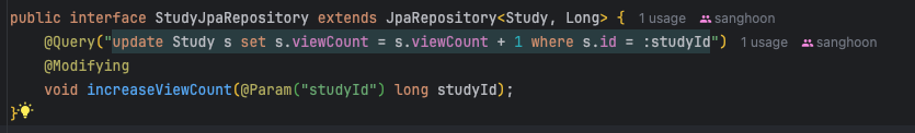 studyRepository.increaseViewCount(savedStudy.getId());